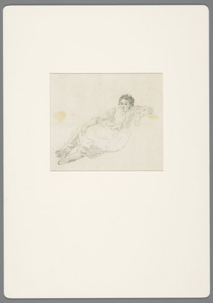Curator: Here we have "Voorovergebogen vrouwenhoofd," which translates to "Forward-Bending Woman's Head," a drawing completed between 1780 and 1849 by David-Pierre Giottino Humbert de Superville, held in the Rijksmuseum collection. Editor: It's striking, this pencil drawing; so simple yet emotionally resonant. The bowed head, the delicate curls escaping the updo – it evokes a sense of melancholy, or perhaps quiet contemplation. Curator: It speaks to the Romantic era's focus on interiority, doesn't it? But I'm also drawn to how the subject is positioned. Consider the politics embedded in posture; who is afforded the luxury to look downward, inward, and why? Editor: I see it too. Her downcast gaze… it reminds me of the visual language of mourning, or even of shame. Throughout history, we see similar depictions used to convey female submissiveness or vulnerability. The softly draped fabric adds another layer to this…perhaps signifying concealment? Curator: Yes, concealment is key here. While formally within the portraiture tradition, Superville perhaps aims at something deeper, more aligned with Romanticism’s turn towards representing psychological states. Is this woman experiencing internalized oppression, or choosing a moment of respite from societal expectation? What narratives were permitted, which foreclosed? Editor: The symbol of downward-cast eyes is fascinating in art. It speaks to humility and devotion across many cultures but it's more ambiguous here. We can ask whether the artist intentionally employed these recognizable symbols. Also her elaborate hairstyle contradicts subservience and reflects high social status. Curator: It creates an undeniable tension between conformity and rebellion, an idea reinforced through the precision of his academic style but it still contains a delicate rendering of an expressive, emotionally complex, woman. Editor: A delicate and timeless study indeed. It seems that even simple portraits offer a profound meditation on the emotional experiences of women in those eras. Curator: Precisely. Even a seemingly modest drawing compels us to examine power, representation, and the unspoken stories embedded within an image.