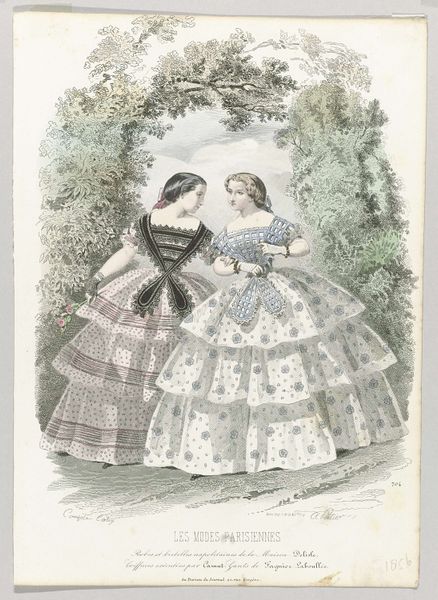 Louis Berlier created this print, titled La Mode, in France on August 15, 1849. It offers us a glimpse into the fashion of the time, but also into the social expectations and roles of women in mid-19th century France. The two figures are dressed in elaborate gowns and bonnets, showcasing the styles of the upper class. Their attire is not merely clothing, but a statement of identity and status. Fashion plates like this one were instrumental in dictating trends, reinforcing class distinctions, and shaping the visual culture of femininity. One can imagine the tight corsets, the layers of fabric, and the restricted movement, all of which were part of the lived experience of women in this era. Consider the historical context: France in 1849 was a society grappling with the aftermath of revolution, class tensions, and evolving gender roles. This image captures a moment in time, reflecting the aspirations, constraints, and performances of identity through fashion.