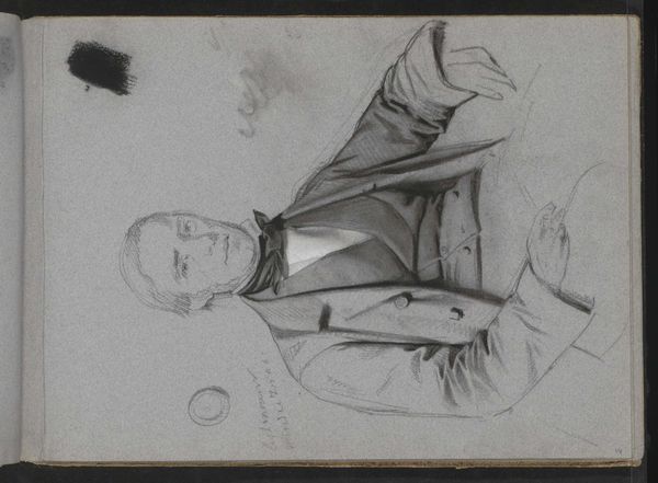 Editor: Here we have Franz Skarbina's "Seated Uhlan," a portrait in shades of gray. The uniform and sword point to the Uhlan's role, but there's a weariness to his posture. What symbols do you see in this piece? Curator: Notice how the Uhlan is seated, yet still holds his sword. This suggests the weight of duty, a cultural memory of military preparedness. Skarbina may be subtly commenting on the psychological burden of constant vigilance. Do you feel that tension? Editor: I do. The sword feels less like an accessory and more like a symbol of the Uhlan's internal state. It makes you wonder about the psychological impact of always being ready for conflict. Curator: Precisely. Skarbina captures a cultural anxiety, making us question the cost of such readiness on the individual. He transforms what could have been a simple portrait into a poignant statement about duty and its consequences. Editor: I'll definitely be thinking about this painting differently now. Thanks!