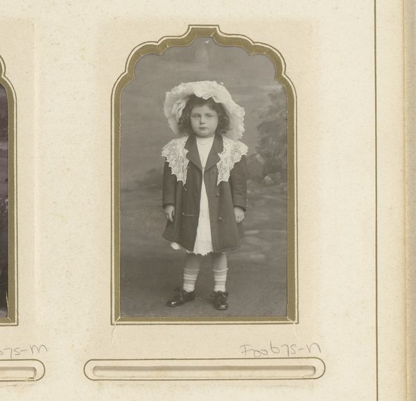 Editor: This photograph, "Portret van een jongen en meisje, aangeduid als Aatje en Liesje v. Son," made by Gebroeders Cordes sometime between 1902 and 1917, is printed with gelatin silver. There's something so staged and formal about it, yet still, the expressions on the children's faces seem so…natural. How do you interpret this work? Curator: Natural, you say? That’s a good jumping-off point! For me, it’s about that very tension. Look at the stiff backdrop, the toy sailboat – props, almost. Then you see the children’s eyes. They’re *there*. Do you feel a sense of timelessness despite its apparent age? Perhaps it’s how it echoes old master portraiture. It has the air of a Dutch Golden Age painting. Editor: Definitely, it's very painterly in a way. But does knowing it's photography change how we view the 'realism' aspect? Curator: Absolutely! The "real" clashes with the artificial – isn’t that what life’s often like? Perhaps they were mirroring the style, aiming to mimic wealth and status, while grounding it with authentic emotion? That little boat probably tells us something too, doesn't it? A shared object for brother and sister, hinting at their life and connection, beyond the still formality. I wonder about the location, the story...what do you think? Editor: I hadn’t considered the personal story so deeply, especially behind a formal piece like this. That sailboat probably had a grand life! Curator: Exactly! The smallest details are key. It brings them to life, makes it a living piece.