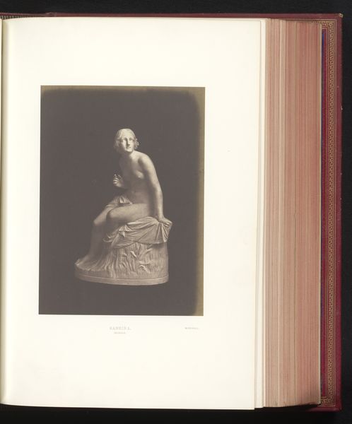 This photograph captures Joseph Tuerlinckx's sculpture of a young Giotto, displayed at the Great Exhibition of 1851 in London. The sculpture, though monochromatic in this image, presents a textured surface achieved through the material qualities inherent to sculpture. The composition centers on the figure of Giotto, seated and holding what appears to be a tablet or writing surface. The artist’s choice to depict Giotto in his youth serves to highlight the theme of potential and the genesis of artistic talent. The formal arrangement invites us to consider the relationship between innocence and creativity. Giotto's seated posture suggests a moment of contemplation, almost as though he's suspended in thought before he begins to mark the surface in his hands. The historical context of the Great Exhibition, where innovation and industry were celebrated, adds another layer of meaning. The photograph stands not merely as a record of a sculpture, but also as a cultural artifact embedded with historical and philosophical weight. This image urges us to reconsider our understanding of art, history, and their cultural implications.