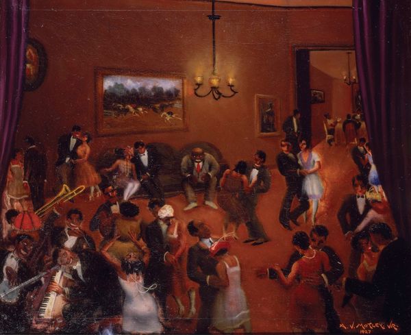 Christoffer Wilhelm Eckersberg captured this fragment of the Carnival in Rome with oil on canvas. Although seemingly traditional, the oil paint is treated in such a way to convey the social context of the scene. Consider the clothing of the figures – the Harlequin’s suit, for instance. Traditionally, these were made from scraps of fabric, reflecting poverty, but in this depiction, the costume’s meticulous rendering lends it an air of bourgeois affectation. The artist’s technique also draws attention to labor. The fine brushwork and attention to detail suggest a tremendous amount of patient work. This is especially true in the rendering of the Harlequin's suit, the costumes texture, and the subtle gradations of light and shadow across the scene. By highlighting the labor involved in both the creation and portrayal of this festive scene, Eckersberg invites us to consider the social dynamics at play during Carnival, blurring the lines between fine art and the everyday realities of labor and class.