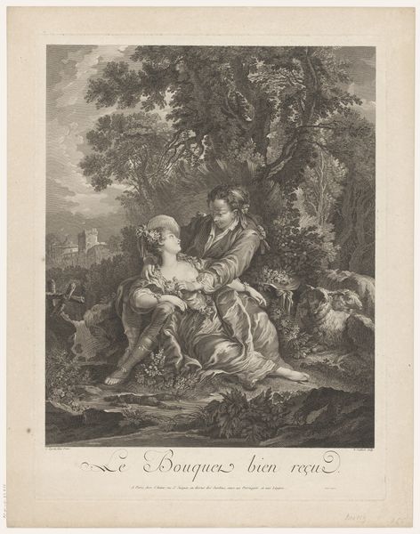 Pierre Filloeul created this print called "Galant gezelschap met muzikant" in France, sometime in the first half of the 18th century. The image depicts an elegant outdoor gathering that evokes the culture of aristocratic leisure. Such gatherings reflected the values of the French upper classes at the time. Notice how the figures are arranged casually within a natural setting, yet their elaborate clothing betrays the artifice of courtly life. This blending of nature and artifice was a distinct characteristic of the Rococo style, which served the cultural function of the court. Prints such as these catered to a growing consumer market for art, making images accessible to a broader public and shaping tastes beyond the court. Analyzing the print's imagery, along with period documents, helps us to understand the artwork as both a reflection and a product of its time. We can see art’s meanings are always shaped by the social conditions in which it is made and viewed.