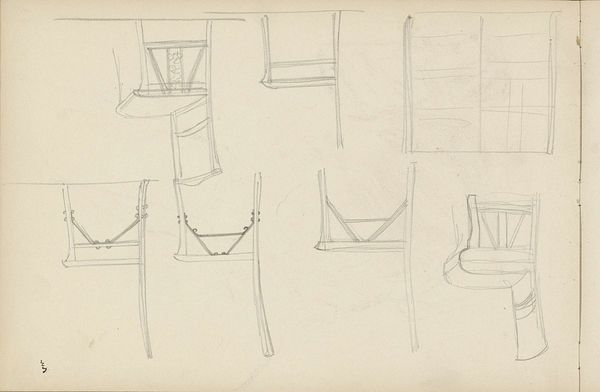 Editor: So, here we have Carel Adolph Lion Cachet's "Ontwerpen voor een salontafel" – designs for a coffee table – from around 1930. It’s a pencil drawing on paper. What strikes me is how loose and exploratory it feels, like a peek into the artist's mind. What catches your eye? Curator: Absolutely, it's the intimacy, isn’t it? The privilege of witnessing the genesis of an idea. I see a dance between the functional and the fanciful. Each sketch a hesitant pirouette towards a finished piece. Notice the almost playful approach to geometry; it’s Art Deco flirting with something far more organic. Does it make you wonder about the final product, or even perhaps *if* it made it into physical form? Editor: Definitely! It makes me wonder what materials he imagined. Did he envision sleek chrome and glass, or warmer woods? How do you think this fits into the broader Art Deco movement? Curator: Ah, the million-dollar question! Art Deco often strives for streamlined perfection, a polished ideal. This drawing, though, feels deliberately unpolished, raw. Perhaps Cachet was exploring a more humane version of Art Deco, one that values the *process* of creation, the artist's hand. What do you think he might have wanted to add to an interior space by adding a uniquely hand-crafted piece? Editor: I guess, in contrast to mass-produced items, these designs add a unique layer to an interior design; perhaps a mark of counter-culture resistance against consumerism. Something that would make you sit up and wonder 'Who designed this and what inspired it?' Curator: Precisely! So, this humble sketch is so much more than just designs. It’s a rebellion whispered in pencil lines. A fascinating insight! Editor: I agree. It's shifted my perspective. I initially saw just a sketch, now I see a conversation. Curator: And isn't that the most magical part of art? The conversations they spark, the perspectives they shift. A sketch might be more important than a polished, finished artwork sometimes!