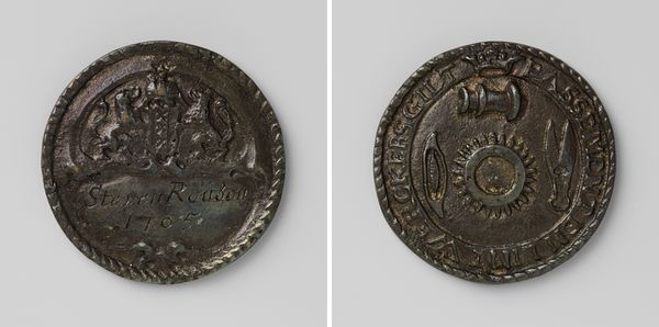 This is a guild penny made in Amsterdam for Michiel Hubert, a member of the Passement and Lintwerkersgilde, or trimming and braid makers guild. It’s made of brass, likely cast in a mold. The penny would have been carried by Hubert as a symbol of his membership and status. The material itself is humble, but the penny represents something far more significant. The guild system was critical to early capitalism. Craftspeople gained legal protection, established standards of quality, and secured their place in the economy. The tools depicted are very telling: scissors, a bobbin, and other specialized instruments. These are not traditional art materials, but instead speak directly to the work done by Hubert and his fellow guild members. This penny reminds us that even small, functional objects can carry immense cultural weight. It invites us to consider the lives and labor of those who made the decorative elements that so enriched early modern life.