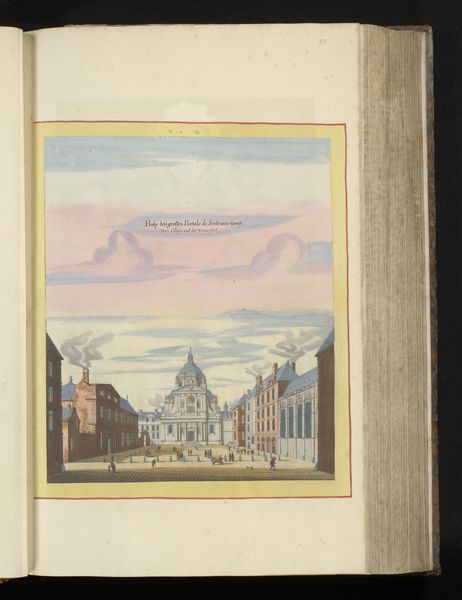 This is a view of the Notre-Dame in Paris, made by Matthäus Merian the Younger in the 17th century using etching and possibly engraving techniques. These processes involve using acid to bite into a metal plate, creating lines that hold ink. This print would have been made by applying ink to the plate, wiping away the excess, and then pressing paper against it. The crisp lines and fine details you see are characteristic of these printmaking methods. Look closely, and you will see how the quality of the etched line varies to create shadow and texture. Consider the labor involved in creating this image. Each line was deliberately etched, showing Merian’s skill and the time-intensive nature of printmaking. The print also speaks to the emerging culture of mass production and consumption in the early modern period. Prints like these made Parisian landmarks accessible to a broader audience, thus challenging traditional notions of art and its value.