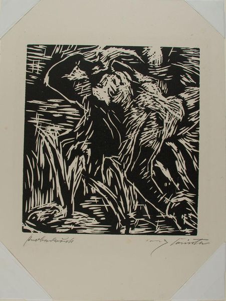 This is Straßenszene, nach dem Regen, by Ernst Ludwig Kirchner, made with woodcut, and look at that pure black and white! It's like Kirchner wasn't messing around; he just went for it. He hacked away at the block, giving us these sharp, angular forms. Notice the faces of the figures, almost mask-like, with these intense, staring eyes. You can practically feel the grit and the energy. I love the way he uses the black and white to create such a strong contrast. It's almost violent, but also kinda elegant. There’s something about the density of the blacks that makes the whole scene feel claustrophobic, a real snapshot of urban anxiety. The way he's playing with the graphic quality reminds me a bit of Munch, but with a more aggressive, in-your-face kind of vibe. It’s a conversation, right?