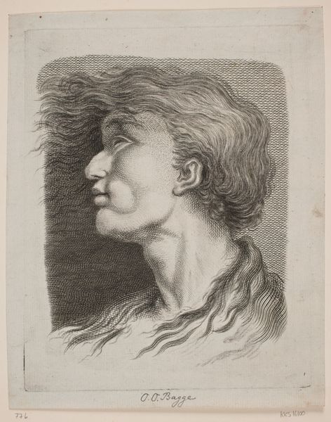 Editor: This drawing, "Portret van een verschrikte man" or "Portrait of a frightened man" by Henricus Franciscus Wiertz, was made in 1847, and the medium appears to be pencil. It is quite unsettling; the raw emotion is intense. What do you see in this piece? Curator: Indeed. The artist captures an exaggerated expression with a focus on the eyes and mouth, key symbolic portals of inner turmoil. Consider the period: 1847. Europe was on the cusp of revolution. Do you think the figure’s terror might symbolize anxieties related to social upheaval? Editor: That’s a very interesting point. I hadn't thought about it in the context of potential revolution, more in personal terms, I guess. Curator: It is both personal and broadly relevant, no? The exaggerated features suggest more than individual fear; Wiertz captures collective apprehension. Look at how the artist renders the hair almost as if it's being blown back by some unseen force – almost a premonition of coming violence. What symbolic function does this use of "wind" or "air" serve in terms of setting an atmospheric stage for emotional expression? Editor: I see what you mean; the hair makes it seem like a physical manifestation of terror itself! Curator: Exactly! Wiertz used widely understood visual shorthands for intense feelings. This continuity, this re-use of accepted imagery, highlights shared humanity across eras. Editor: Wow, I will never see a drawing like this the same way again. Thanks. Curator: My pleasure. It's in reflecting upon these cultural echoes that art truly comes alive.