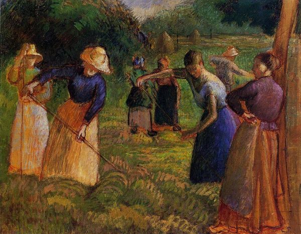 Camille Pissarro painted 'Peasant Women Planting Stakes', using oil on canvas. Pissarro, of Jewish-French heritage, was deeply interested in the representation of rural life and labor. He often depicted the working class with empathy and respect, challenging the dominant romantic portrayals of peasant life. The painting offers a glimpse into the lives of women who are actively shaping the land. Their physical engagement with the earth, planting stakes, becomes a powerful statement about their role in agricultural production. Pissarro avoids idealizing his subjects, showing their hard work. The women are faceless, so this moves away from traditional portraiture and shifts the focus to their collective action. Pissarro's work invites us to reflect on the historical and cultural contexts that shape our understanding of labor, gender, and the land. It asks us to consider whose stories are told and whose are often left out.