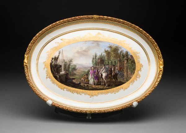 Editor: This is a Loosdrecht tea service for two, a *tête-à-tête*, crafted around 1782 to 1784, employing ceramic and porcelain, delicately painted with watercolor. It strikes me as such an intimate, luxurious object. What narratives do you think such an object was meant to perform? Curator: It’s a beautiful piece that really embodies the Rococo era. What initially grabs my attention is thinking about what "tea" itself represented, socially. This wasn’t just about drinking a beverage; it was deeply intertwined with trade, colonialism, and ultimately, class. Can we consider, perhaps, the relationship between the delicate artistry and the rather brutal realities that made its creation possible? Editor: That's a really powerful perspective! I hadn't considered the darker side of such a seemingly delicate object. So, the act of using this service, then, was in itself…complicated? Curator: Precisely. Think about who would have been using this. Wealthy Europeans, likely benefiting directly from colonial exploitation. This tête-à-tête, this intimate sharing of tea, becomes a stage for performing social status, but it also hints at a deliberate ignorance of the source of that wealth. What story is being obscured by this beautiful image of commerce in the central reserve? Editor: That makes me see the history-painting scene in a completely new light. What looked like simple commerce now feels like a screen, hiding something less palatable. So the function of these pieces would have been to perform rituals that disguised inequality? Curator: Exactly. These objects are not passive. They are active participants in the social and political theater of the late 18th century. What happens when we place these objects on a global stage? Editor: Wow. I will never look at a fancy tea set the same way again! Thanks for showing me a new way to contextualize historical art. Curator: My pleasure. It is important to reflect on the ethical implications present in art. It helps to question perspectives.