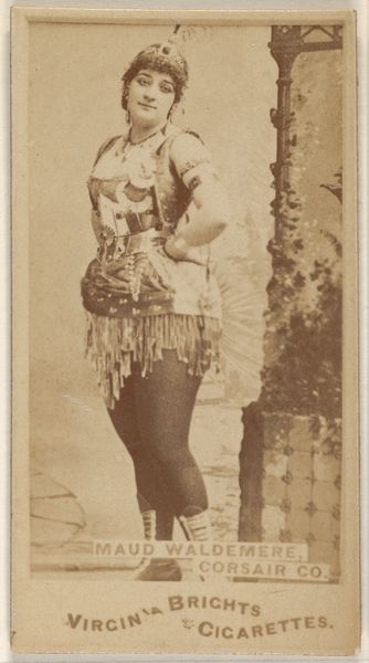 This card, made by Allen & Ginter for Virginia Brights Cigarettes, features Annie Summerville of the Corsair Co. and belongs to the "Actors and Actresses" series. These cards, akin to modern-day trading cards, circulated in a late 19th-century America deeply fascinated by celebrity and performance. Summerville's theatrical costume and assertive pose provide a glimpse into the complex dynamics of gender and representation in this era. The 'Corsair Co.' hints at productions filled with adventure, heroism, and perhaps, a touch of exoticism. The gaze she directs towards the viewer is open to interpretation: confident, inviting, or perhaps a calculated performance for the camera. What does it mean for a woman to adopt the persona of a corsair, a figure traditionally associated with male bravado and freedom? These cards were not merely innocent collectibles, but reflections of societal aspirations and fantasies. They shaped perceptions and contributed to the construction of identity, both for the performers and their audience. As we look at Annie Summerville, let's consider the ways in which she and other actresses of her time navigated the expectations placed upon them, crafting their own narratives within the constraints of a rapidly changing world.