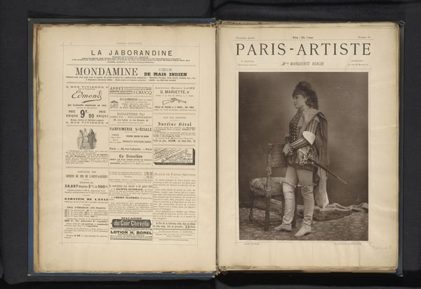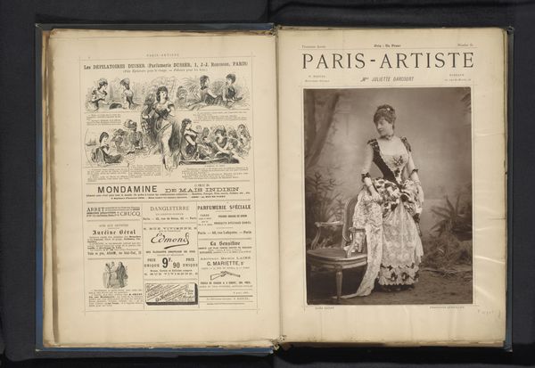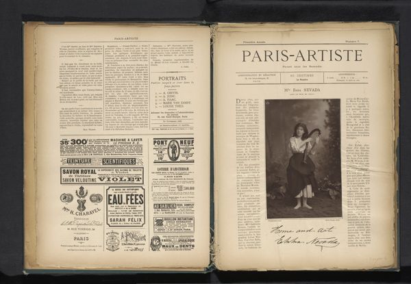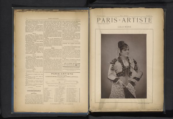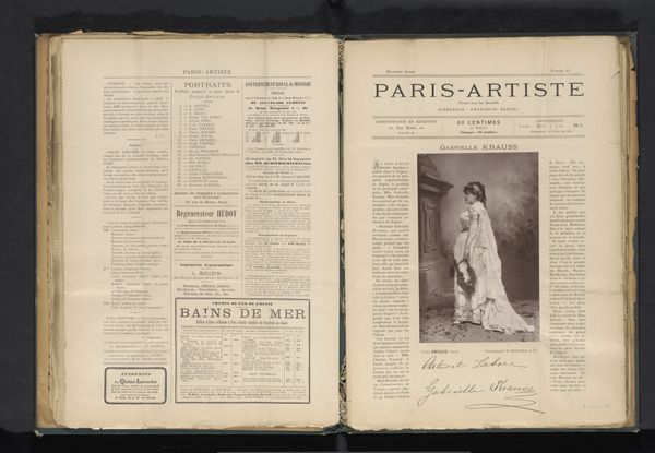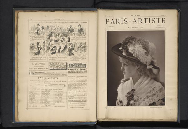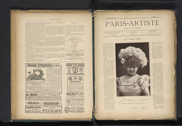 This is Wilhelm Benque's "Portret van Cécile Mezeray," a print of a photograph appearing in an issue of "Paris-Artiste." The composition is immediately striking. The stark contrast between the black text and sepia image of Mezeray creates a visual tension. The print's structure invites us to decode the underlying narrative. Each element functions as a sign, contributing to a larger discourse around celebrity, representation, and the gaze. Consider the portrait itself: Mezeray is posed, adorned, and framed by text—her image meticulously constructed and disseminated through print. This process transforms her into a commodity, a signifier within the semiotic economy of fame. The gaze, both within the image and directed at it, becomes a site of power and control. Benque's work challenges fixed notions of identity and representation. It invites us to question the structures that shape our understanding of the self and its image in the public sphere. Art is, after all, a site of ongoing interpretation.