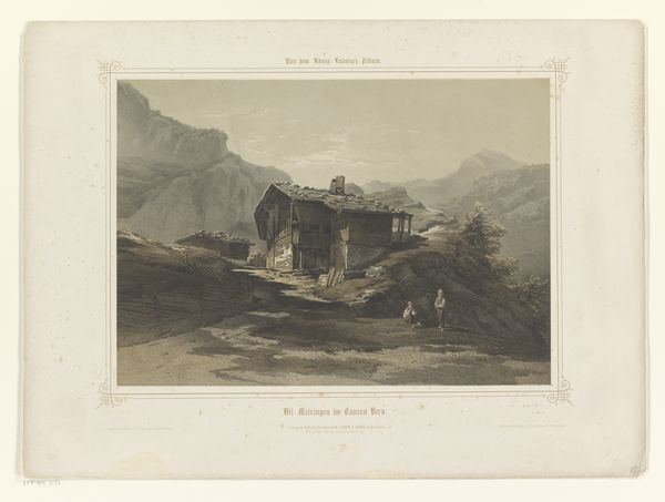 This is "Klooster in rots gebouwd" by Paulus Lauters, an engraving on paper at the Rijksmuseum. The artwork has a composition of detailed, contrasting tones, and varying textures that evoke the sense of a peaceful, secluded place. Lauters uses a semiotic system where the abbey represents cultural and religious order, contrasted by the wild, natural rock face. The use of light and shadow creates a sense of depth, while the architectural elements are sharply defined against the softer, more organic forms of the landscape. The composition challenges the traditional separation of nature and culture by showing how structures can be integrated, suggesting a harmonious relationship. The presence of people and animals at the base of the image engages with the artwork's structure, inviting viewers to contemplate themes of religion, nature, and humanity.