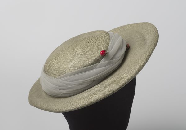 Editor: So, this is a photograph, circa 1910-1925, of a hat – "Hoed van zwart stro, versierd met wit ripslint en zwart vilt" by W. G. van der Laan. It's a black straw hat decorated with white ribbon and black felt. The close-up photography gives it a weighty, sculptural quality, almost as if the hat itself is the most important thing. What strikes you when you look at this piece? Curator: Well, let's consider the material composition. We have straw, ribbon, felt – humble, readily available materials transformed into a symbol of status. Notice how the photograph itself treats these materials; they're presented with the same care one might give to precious metal. This challenges a hierarchy of value – what makes fine art "fine" and craft merely "craft"? Does the artistic merit derive from the inherent expensiveness of the materials, or from the labor and intention invested in the object? What does it say about early 20th-century Dutch society that even something as seemingly mundane as a hat is given this sort of careful attention? Editor: I never thought about it that way! It is kind of radical to consider a photograph of a simple hat a high form of art... so much is communicated through materials and technique here. Does the photographic medium itself contribute to our understanding? Curator: Absolutely. Photography democratized portraiture; here it gives everyone a chance to contemplate craftsmanship, design and also commerce since those hats were likely merchandise. So how we read this piece is how those materials intersected with people's everyday lives. Editor: Thinking about the hat now – I find myself reflecting on the labor, consumption, and even social statements embedded within such everyday objects. Curator: Exactly. Material analysis redirects our focus from individual genius to a network of creation, distribution, and lived experiences.