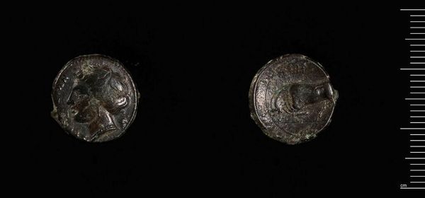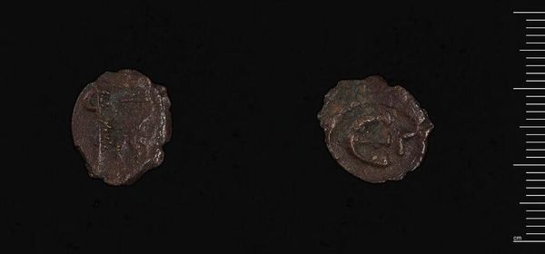 Curator: Isn't it remarkable how a tiny thing can hold so much history? This is a Pentanummium, a coin minted during the reign of Justinian I. Editor: It's like a little, worn pebble, isn't it? So unassuming, yet whispering stories of empires. I wonder how many hands this little coin passed through. Curator: Exactly! And each side tells its own tale. On one, we see the imperial bust, a stylized portrait meant to convey power and authority. The other likely indicates the coin's value. Editor: I find the material itself so compelling. You can practically feel the weight of time etched into its surface, this unassuming, earthly fragment. Makes you think about legacy. Curator: Yes, and considering the reign of Justinian I, a period marked by significant legal reforms, military expansion, and ambitious building projects... this coin, in a way, symbolizes all that. Editor: So, this small artifact, this humble Pentanummium, carries the immense weight of Byzantine ambition. It is a token of a grand vision that is now a quiet whisper in metal. Curator: Absolutely. It reminds me that even the smallest objects can illuminate the grand narrative of history. Editor: Indeed. A small coin, perhaps, but a large meditation on power, time, and memory.