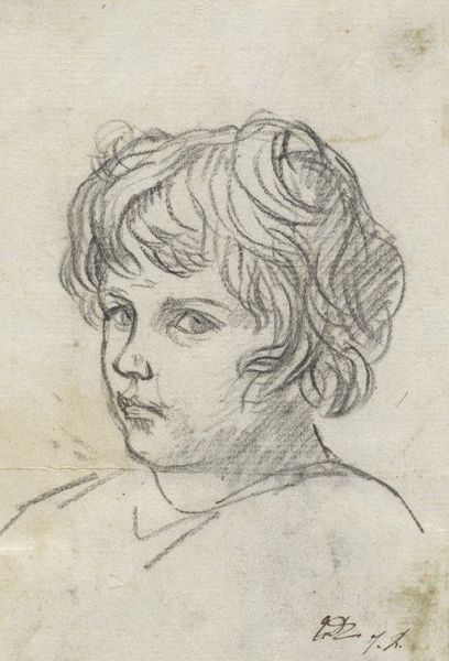 Curator: Here we have Giuseppe Angeli's "Head of a Boy", currently residing at the Harvard Art Museums. It is rendered with chalk. Editor: Oh, he looks like such a mischievous cherub, caught between innocence and a bit of trouble. Curator: Considering Angeli’s Venetian context, it’s intriguing to think about the availability and social status linked to chalk as a readily acquired, mass-produced material for sketches. Editor: Yes, and the accessibility almost lends it a raw, unfiltered quality, as if the boy's spirit jumped straight from the artist's mind onto the paper. There’s this lovely immediacy in the line work. Curator: It's also crucial to understand how artists like Angeli moved within a system where rapid sketches could translate into more formal, commissioned works, engaging with the art market of his time. Editor: Absolutely. It's like a snapshot of pure potential. It makes you wonder what this young lad got up to after sitting for his portrait. Curator: Indeed, seeing the work through the lens of economic and social factors enriches the narrative beyond the surface. Editor: Agreed. It's a reminder that even a simple head study like this holds so much history within those chalky lines.