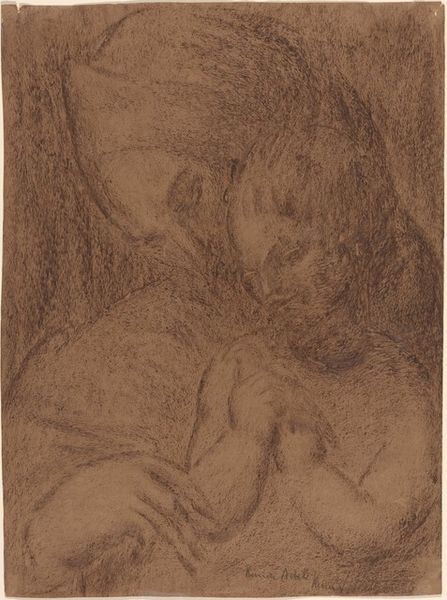 Jan Veth rendered this charcoal drawing, titled "Portret van Justje," in 1888. The subject’s bowed head evokes a sense of humility and introspection, a posture laden with historical precedent. Consider the figure’s bowed head; it echoes gestures of reverence and submission found in countless religious artworks across millennia. This posture transcends mere representation, tapping into a collective memory of piety and supplication. From medieval depictions of the Virgin Mary to ancient Egyptian hieroglyphs of mourning figures, the downturned head has consistently signified deference and contemplation. The emotional weight of the bowed head lies in its ability to trigger subconscious responses. It is a posture that speaks of vulnerability, humility, and introspection, engaging viewers on a deeply empathetic level. This motif is not static but evolves, accumulating layers of meaning as it traverses through time. The power of the image resides in this cyclical progression, constantly resurfacing and adapting to new cultural contexts.