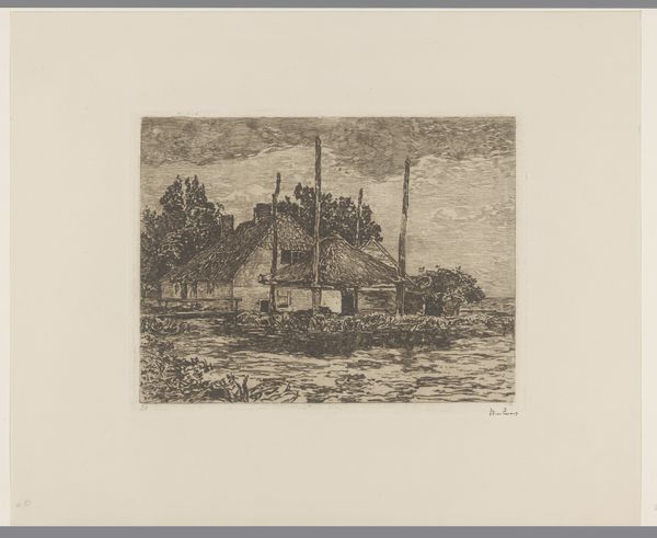 Johan Frederik Croockewit made this etching of a farm by a canal sometime in the 19th century. This piece provides a glimpse into the Dutch countryside, a world that, even then, was on the cusp of immense change due to industrialization. The thatched-roof house sits humbly by the water, a small boat resting at its bank, all rendered in precise detail. Note the figure by the water, seemingly caught in a moment of domestic labor, perhaps washing clothes. Croockewit invites us to consider the lives of the rural working class and their connection to the land and waterways. The details encourage us to think about the intersections of labor, landscape, and identity in the 19th-century Netherlands. This piece is a reminder of the intimate relationship between people and their environment. It invites reflection on how progress and development affect the lives and livelihoods of those most connected to the land.