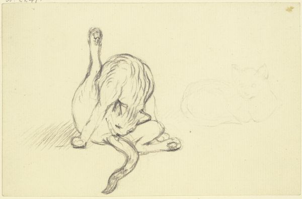 Curator: Here we have "Head and Arms of Julia from Romeo and Juliet", a drawing made circa 1869-1871 by Victor Müller, now housed here at the Städel Museum. It is executed in pencil on paper. What are your first impressions? Editor: There's a distinct vulnerability in this sketch. The lightness of the pencil lines almost feels like a veil over Julia, a sense of her fleeting, ephemeral nature. Curator: It’s interesting to consider this work in relation to the broader artistic climate of the late 19th century. Müller was part of a generation grappling with academic traditions while looking for new modes of expression. A preparatory drawing like this really showcases that tension, wouldn’t you agree? Editor: Absolutely. Hands, particularly, have a loaded symbolic resonance throughout art history. Think of the hands of saints in devotional paintings, or lovers’ hands clasped. These hands speak of longing, of fragility. Müller's quick, almost frantic strokes, don’t allow for idealization – the vulnerability you see probably represents more realistic touch. Curator: You touch on the role of sketching and its relationship to the finished, exhibited work. Artists like Müller often relied on studies like this to work through ideas, to refine compositions and explore details. It really points to the processes of creating during the 19th Century. Editor: And even this partial rendering conveys so much about Julia's psychological state, even outside of the whole. Her tilted head, averted gaze… there's a resignation. It adds to the aura of melancholy associated with Shakespeare’s character. It brings out the universality of romantic love. Curator: Given the intense focus on tragic female figures throughout the period, what are the social factors you believe might have played a role here? Is it a kind of obsession or a deeper reflection of the roles women play? Editor: I think its about cultural idealization and limitation. Julia is, at once, a figure of passionate rebellion and tragic, almost punished innocence. Müller picks that dichotomy, the vulnerability, but hints at inner life too. Curator: It is interesting to think of this drawing, which provides a window into the artist’s process, also mirroring the themes present in the original source text. Editor: Exactly! The sketch quality feels poignant— unfinished and ultimately, heartbreaking.