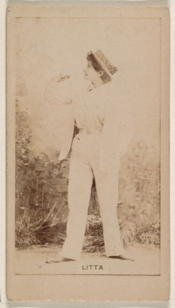 This cigarette card, part of Allen & Ginter’s "Actors and Actresses" series, presents a theatrical portrayal of "Joli Gilles," a character deeply rooted in the Commedia dell'Arte tradition. Here we observe the melancholic clown, a figure akin to Pierrot, dressed in a white costume. His open mouth is reminiscent of dramatic masks found in ancient Greek theatre, designed to amplify emotion and project the voice. This echoes the timeless human impulse to express profound feelings through performance. The image is heavy with emotion, it evokes a sense of profound sorrow that transcends time. The motifs of the clown and the mask are recurrent symbols of the human condition, of sorrow and laughter, ever-present. It is an emotional archetype that resurfaces again and again, each time molded by the zeitgeist.