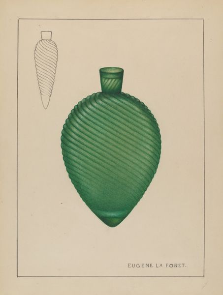 Charles Caseau made this drawing of a ‘Flask (Pitkin Type)’ sometime in the 20th century. The careful application of paint is key to understanding Caseau's process. It’s not just about representation, it’s about making something new. The color is amazing – all these greens, browns, and yellows mixing together to create the impression of light filtering through glass. Look at the way the lines swirl around the body of the flask, mimicking the way the glass itself was probably formed. You can almost feel the heat and the movement of the molten material, as if Caseau is conjuring the liquid glass in his paint. The way he plays with transparency and opacity, layering the paint to build up depth, is really something. You know, this reminds me of some of Giorgio Morandi’s still lifes, the way he could make these simple objects seem so monumental. It's a reminder that art is an ongoing conversation, always echoing and responding to what came before.