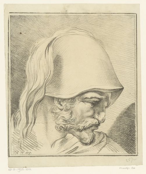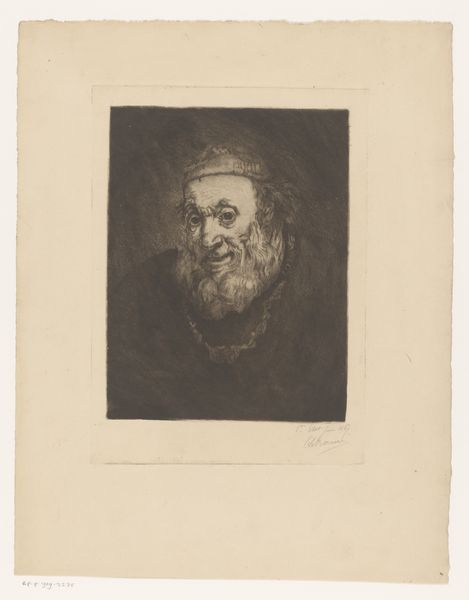 Curator: There’s a quiet intensity in this print; it’s quite striking in its monochrome palette. Editor: This is 'Ben Ouènnès,' an etching by Philip Zilcken, created between 1867 and 1890, currently housed in the Rijksmuseum. Curator: The textures Zilcken achieves are compelling. I’m drawn to the etching lines – how they delineate form and imply shadow. What sort of social or historical contexts informed this type of portraiture, beyond the material considerations of production? Editor: These ethnographic portraits were often tied to colonial ventures and the “scientific” documentation of different racial types. So, while we can appreciate the technical skill involved in the etching process, we must consider the unequal power dynamics inherent in the gaze. This piece reinforces Western European narratives about the "other," doesn’t it? Curator: It’s definitely worth acknowledging those structures, yes. And consider how this piece, as a print, participates in a culture of reproducibility; these images circulated, shaping perceptions of people outside the European gaze. Editor: Absolutely. Who was the piece aimed for? An elite, academic, or curious public with vested interest in exoticized representations, which solidified a supposed superiority in their views. Curator: Looking at the details of Ben Ouènnès clothing and the texture of the beard—we have evidence of his appearance from what we are able to extract. How might the labour involved in printing and distribution intersect with the representation of this person? Was Ben Ouènnès paid? Or even aware of this piece? Editor: We need to grapple with those questions. The image isn’t just about aesthetics. Whose story isn't told? And why were images such as this printed instead of others. What narratives do the makers try to write to us, today, in 2024? Curator: Understanding the labor involved is part of understanding the whole story that materials alone, can never tell. Editor: True indeed. Looking deeper is what allows us to learn, connect, and understand a work from all perspectives.
