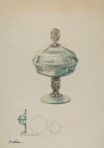 Chris Makrenos made this drawing of a silver plate bread basket sometime in the twentieth century, using watercolor and graphite on paper. The basket itself is rendered with delicate washes, like a memory of silver rather than the thing itself. The graphite is reserved for the botanical illustration and tiny pearl-like beads along the rim of the basket. It’s interesting to see how Makrenos uses these different modes of depiction. Look at the handle, for example, where the graphite and watercolor seem to be fighting for dominance, one trying to outline and contain the other. That push and pull feels very contemporary. It reminds me of Elizabeth Murray's playfulness with form and function, and how she also blurred the boundaries between the abstract and the representational. Ultimately, it’s these kinds of tensions that keep us looking, questioning, and finding new meanings in art.