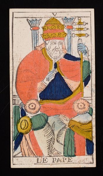 Editor: Here we have Claude Burdel’s "The Hermit," an engraving from 1751. It’s small and kind of unassuming, but something about the figure's solemn expression is really compelling. What do you see in this piece that maybe I'm missing? Curator: Well, isn't he just a wonderful old soul! I think this piece speaks volumes about the symbolism inherent in tarot traditions. It really reflects that pre-revolutionary search for personal truth and enlightenment, but told through a more medieval lens. It's almost like Burdel is asking us, 'Where do you seek your light?' See how the lantern is held high? Editor: He is holding that lantern pretty high! And his cloak almost reminds me of the night sky! You mentioned personal truth—so he’s not just a religious figure? Curator: That's the beauty of it! While the Hermit archetype can be interpreted through a spiritual lens, especially given the historical context of seeking guidance from wise figures, here he also embodies that introspective journey we all take, or perhaps should take. This isn't about dogma; it’s about soul-searching. I'm tickled by how, even in something that looks quite conventional, we see the seeds of revolution. It makes you wonder what truths he has uncovered during his period of solitude, don’t you think? Editor: I do now! Looking closer at the texture of the cloak, staff, and even the light radiating out—that almost makes me think of other contemporary figures searching for some greater truth. I can see how this could easily fit within symbolism and history-painting. Thanks, that’s really helpful. Curator: My pleasure! And to think it all comes from this little engraving. Never underestimate the power of the small to illuminate the big questions, eh?