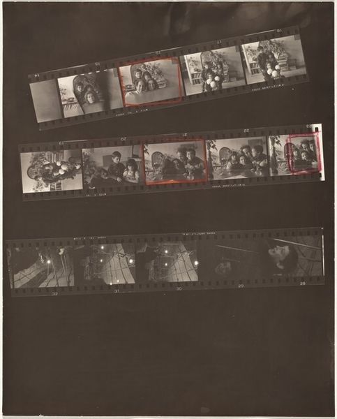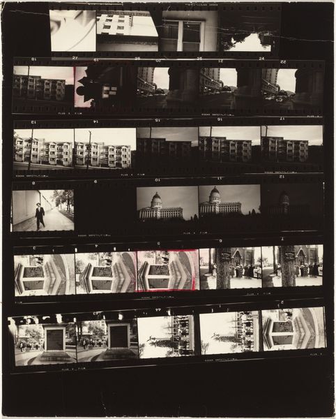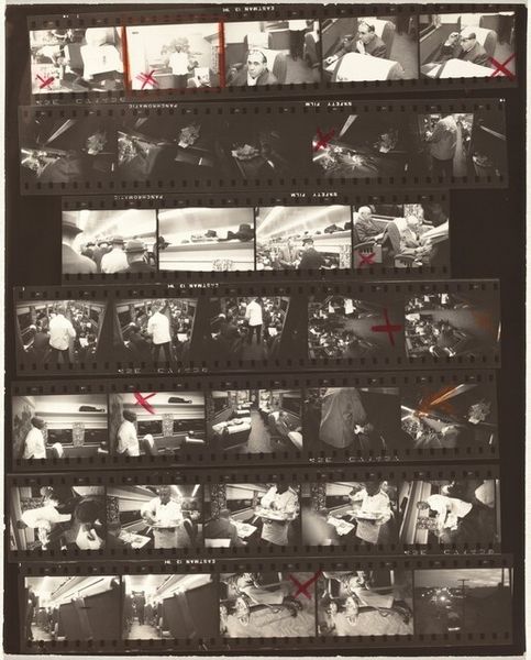 This is Robert Frank’s ‘Congressional 1’, a series of black and white photographs, printed on a single sheet. The contact sheet presents many images, each one a small window into a moment in time, marked with grease pencil edits. It's like the artist is thinking out loud, making decisions about what to include or exclude. The texture here is inherent to the photographic process; the grain, the contrast, and the surface sheen all speak to the physicality of film. There is an immediacy to the images, as though Frank is searching for something authentic. The red marks scribble across the frames. They're like casual thoughts, connecting different images, maybe even obscuring some to emphasize others. This process reminds me of what Rauschenberg was doing at the same time; breaking down barriers between mediums, and bringing a sense of action into the art itself. Ultimately, the work invites us to consider how choices shape meaning, and the many ways one can look at the world.