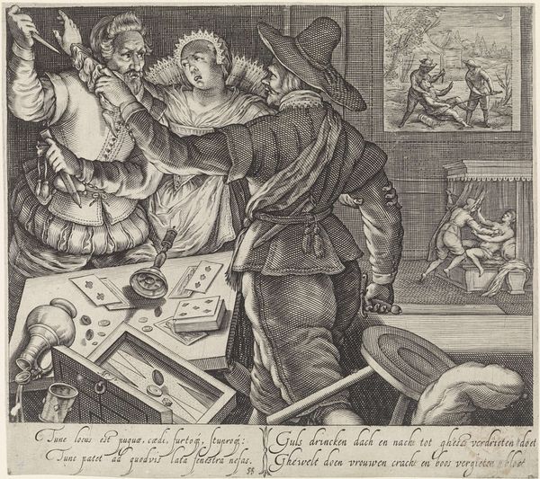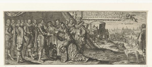 Carel Allard created this print in 1708 using the technique of etching. This process involves using acid to cut into a metal plate, which is then inked and used to make multiple impressions on paper. It was a popular way to disseminate images and information widely in the 17th and 18th centuries. The fine lines and details that Allard achieved speak to the level of skill required. Notice how the etching captures textures and conveys a sense of depth, despite being a two-dimensional medium. The relatively low cost of production meant that these kinds of images could reach a broad audience. This allowed for the circulation of political commentary, news, and satire, reflecting the growing public sphere and the rise of print culture. Consider the labor involved, from the initial drawing and etching of the plate, to the printing and distribution of the final product. This print exemplifies the intersection of art, commerce, and social commentary in the early modern period, blurring the lines between fine art and mass media.