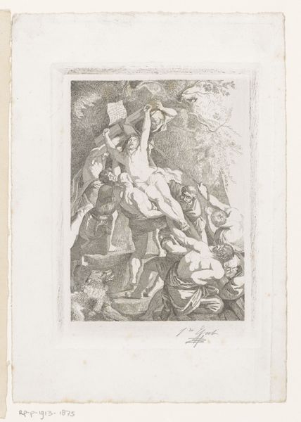 This is Zacharias Dolendo's "Oordeel van Paris," a print at the Rijksmuseum. The dimensions are intimate, yet the scene is grand. The composition is fragmented, as if a classical frieze has been unearthed, damaged, but retaining its power. Dolendo uses delicate hatching to model the figures, giving them a sculptural presence. Look at the way Paris turns away, as if in hesitant contemplation. This formal choice isn't accidental; it’s about the internal struggle, the subjective nature of beauty itself. The rough edges of the print challenge the idea of a perfect, self-contained artwork. Its incompleteness mirrors the unresolved nature of judgment. Is beauty objective or subjective? The print doesn't offer closure. It's a glimpse into a world where values are in flux, where classical ideals are being questioned. This print invites us to consider how such forms shape our perception of this enduring myth.