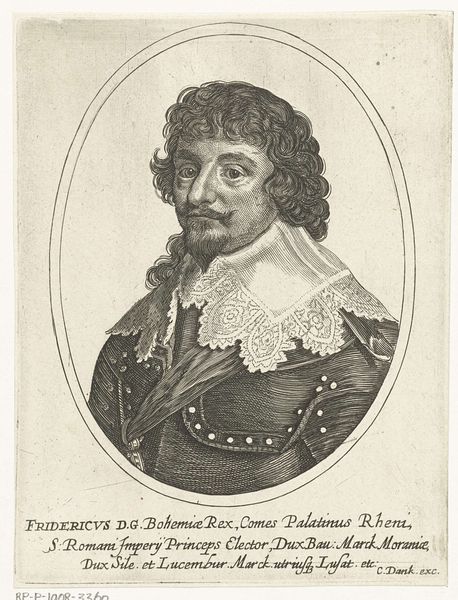 Editor: So, this is Gérard Edelinck’s "Portret van Claude Mellan," made sometime between 1666 and 1707. It's an engraving on paper. I'm struck by the detail in the face, and the contrast created just through lines. What stands out to you from a formal perspective? Curator: The composition employs a rigorous geometric structure. Note the oval frame, a classical motif, within which Mellan's figure is meticulously placed. Consider the texture achieved purely through the manipulation of line: the varying densities create depth, highlight, and shadow. It's a testament to the materiality of the printmaking process. Editor: I hadn't really considered the geometric frame *as* part of the artwork! I was more focused on the figure, especially the collar and the slight smirk on his face. The balance is striking, though; almost symmetrical. Curator: Observe the deliberate lack of background detail. All visual weight is given to the subject and his garments. How does that directionality affect the gaze, do you think? Editor: It definitely keeps your focus centered! Because there is very little 'noise' to distract you, the image appears cleaner and makes you pay close attention to the elements within the frame. Curator: Precisely! The absence of color underscores the emphasis on form and line, showcasing the skill involved in achieving such a likeness through purely graphic means. This print serves as an interesting essay into portraiture and the capabilities inherent to engraving as a medium. Editor: It’s amazing to see how much impact something so simple, materially, can have through its masterful execution. I guess that is what good craftsmanship is all about. Curator: Indeed. By analyzing its visual elements, we gain a deeper appreciation for the artist’s intentional choices and their overall effect on the work’s meaning and aesthetic impact.