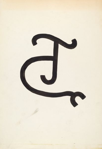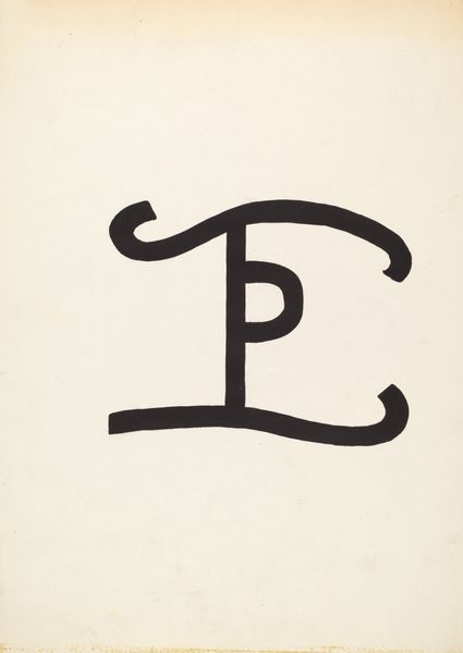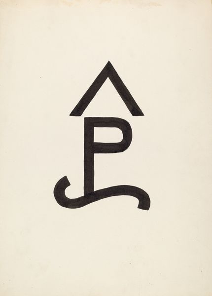 Editor: We’re looking at “Cattle Brand,” a drawing made around 1936 by J. Henry Marley. It’s a bold, graphic image. It's just this symbol rendered in thick black lines against the stark white paper. I find the negative space really striking. How do you interpret this work? Curator: Let us examine the internal relations of the piece, divorced from its potential external referents. Observe the confident, unwavering line that forms the glyph. There’s a distinct tension between the rigid, verticality of the 'P' form, if we may call it such, and the fluid, almost calligraphic, curves that connect to it. Do you see how the weight of the line itself contributes to this tension? Editor: I do! The thick, consistent width gives it a real presence, but the contrast between the straight and curved sections makes it feel dynamic. Like it could almost be moving. Curator: Precisely. And consider the semiotic weight of the forms themselves. Are we seeing representations of letters, or simply abstract shapes that our minds attempt to categorize? The work exists in that liminal space. What then is signified, and by what rules? Editor: So, it’s about the tension between representation and pure form, right? Not necessarily what it IS, but what it DOES as a composition? Curator: Precisely. The drawing asks us to consider the language of shape and line, and how those elements construct meaning, or indeed, deconstruct it. Editor: I see. I was so ready to jump to its historical context, but looking at just the form… it’s a lot more complex than I initially thought. Curator: Agreed. Focusing on form opens new possibilities in meaning making.
