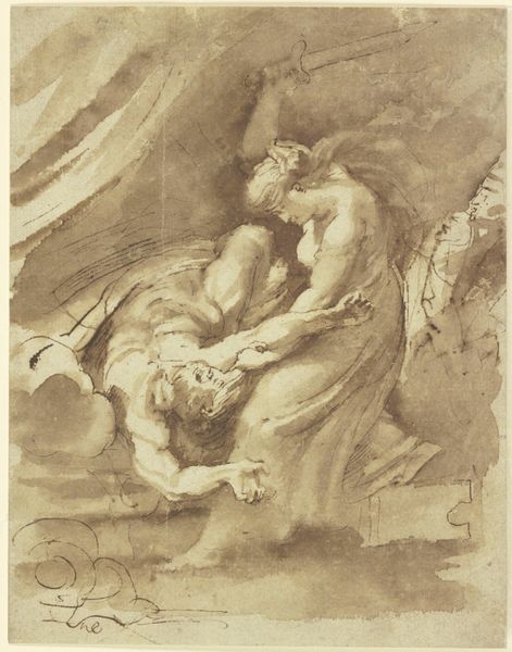 Josef Neher created this drawing of a male nude on a rock at an unknown date using a reddish-brown material called red chalk. What immediately strikes the viewer is the play of light and shadow, skillfully rendered through hatching and cross-hatching. These techniques give depth and volume to the figure and the rock he is resting on. The composition is structured around diagonals. The man's body, angled across the page, is mirrored by the slope of the rock, creating a dynamic tension. This tension is further emphasized by the contrast between the smooth, idealized skin of the figure and the rough texture of the rock. One cannot help but consider the philosophical undertones here. The nude male form, a classical subject, is set against a natural, almost geological backdrop. This juxtaposition suggests a dialogue between the ideal and the real, the human and the natural world. By focusing on form and structure, Neher invites us to contemplate the complex relationship between the human figure and its environment. Remember, the beauty of art lies not just in what we see, but in how we interpret it.
