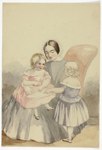 George Richmond captured this watercolor, "Portrait of Two Children," sometime in the 19th century. Here, the girl’s dress, cinched with a rose-colored sash, harks back to classical drapery, an echo of antiquity in a modern setting. The gesture of the girl leaning on her brother evokes images of familial bonds, reminiscent of classical depictions of brotherly love and support. This image calls to mind the motif of the protective sibling, found in numerous Renaissance paintings, where gestures of familial affection were imbued with deeper moral significance. Consider how the sash, a simple adornment, can symbolize both innocence and status, much like the ribbons adorning figures in Rococo paintings. These are fleeting yet powerful symbols that connect us to the emotional and psychological landscape of childhood across centuries. They reflect a collective memory of tenderness and care, continually reshaped by cultural norms and personal experiences. These images are more than just portraits; they are vessels of cultural memory, carrying within them the echoes of past affections and the seeds of future interpretations.