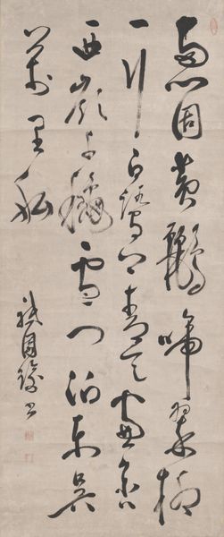 Ryū Kōbi created this poem while traveling, using ink on paper, sometime in the 18th century. The visual impact of the poem depends on the flow of ink from the brush. This not only forms the ideograms themselves but creates a tonal range from the deepest black to the palest grey. The paper support, too, plays a vital role. The absorbency of the paper influences the ink's spread, contributing to the texture. These subtleties are only possible through traditional techniques, centuries in the making. Consider also the time taken for Ryū Kōbi to master his calligraphic skill, and his dexterity with the brush. Beyond its aesthetic qualities, calligraphy has deep roots in Chinese and Japanese culture, tied to scholarship, spirituality, and the ruling class. It is therefore far more than a decorative art; it’s a direct connection to the artist’s mind and historical context. By appreciating the materials and process, we can gain a deeper insight into its making and cultural value.