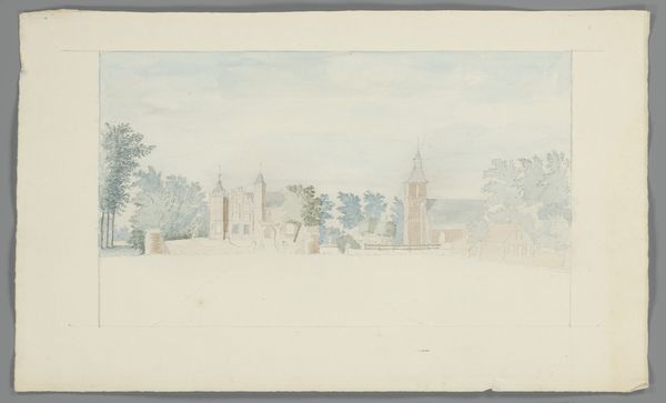 Curator: Ah, a tranquil scene. Lodewijk Johannes Kleijn's "Huis aan de Vliet te Voorburg," a watercolor painting created sometime between 1827 and 1897. Editor: There's a stillness here, almost haunting. The soft grays and greens create this very placid yet melancholy mood. The watercolor application seems almost ethereal. Curator: The work invites a reflection on 19th-century Dutch society, I think. Kleijn’s representation of the stately home by the Vliet river hints at the prosperity enjoyed by a certain class while, of course, concealing the realities of colonialism and the working class that supported such comfort. The idyllic imagery, however, subtly contrasts the broader context of exploitation. Editor: Interesting point. Looking at the formal aspects, it's the careful layering of the paint that holds my gaze. Notice how the verticality of the trees is juxtaposed with the horizontality of the water line, dividing the composition. The reflection adds a nice mirroring symmetry too, while slightly distorting the original forms. There's a kind of calculated pictorial architecture at play. Curator: Indeed. That calculated architecture speaks to a deliberate construction of national identity, a kind of visual rhetoric that seeks to affirm particular values through seemingly benign landscape depictions. These works become stages where narratives of belonging are performed. Were those allowed on those lawns included people of color, queer folks, poor people? I wonder what these houses represented for different classes of the time? Editor: Perhaps, but can we separate the artist's conscious intention from the inherent qualities of the image itself? The semiotic reading is there, the balance of tones, the texture creating depth—elements working together irrespective of societal narratives, providing viewers aesthetic pleasure. Curator: The aesthetic experience can never exist outside the frame of the sociopolitical, though. Beauty is not neutral; it is coded and carries with it a history of power relations. Editor: An important consideration. Still, the artistic strategies should not be dismissed because it allows for a universal experience, reaching viewers across different eras and social contexts. Curator: Perhaps the tension between those universal and particular readings is what makes this artwork enduring. Editor: A fitting perspective to carry forward. Thank you.