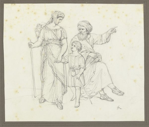 Curator: Look at this drawing. Friedrich Moosbrugger sketched a picture of "Family Playing Cards," sometime in the 19th century, rendering the scene in delicate pencil strokes. It resides here in the Städel Museum collection. Editor: My first thought is of intimacy, wouldn't you say? The soft lines create a sense of warmth and quiet concentration, like a glimpse into a private moment. Curator: Absolutely. Think about the symbolism inherent in a family playing cards. Games have always been a way to transmit cultural values. Consider how the act of playing together fosters a sense of shared experience and even negotiation. Editor: I like that you emphasize negotiation. I'm immediately interested in how images such as these shaped the burgeoning middle class’s self-perception. To display such an artwork meant declaring a belief in domesticity and refined leisure. Notice the carefully sketched artwork hung above the card players? Even the accessories on the sideboard announce taste and refinement. Curator: A lovely point. It reminds me that even the poses—each family member absorbed in their cards, heads tilted just so—speak volumes. It could symbolize each person's individual role, yet interconnected within the familial unit. Consider, the game is never solitary; you require other actors, each contributing in the same way. Editor: True, this drawing may be a gentle construction, projecting certain ideals about bourgeois family life that were actively being promoted, say, through publications and exhibitions. There’s a certain power to showing an ordinary scene; an intention. What stories were these scenes meant to promote, and who benefited? Curator: That's fascinating, especially if we acknowledge art's role in upholding those constructs. Perhaps works like this one reveal just how self-consciously individuals crafted their domestic lives, reflecting desires to be regarded within certain echelons of society. Editor: Indeed. I think I'll carry with me this interplay between idealized image and social construct, to the extent it complicates assumptions we can so casually have. Curator: For me, I keep pondering about the layered symbolisms we discover within such seemingly quotidian moments.