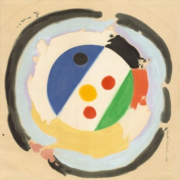This untitled piece by Antonio Asis is alive with floating circles and pure colour. It's a symphony of graphic shapes, each one carefully placed, but somehow still feeling totally spontaneous. You can tell it’s about process. Look at the surface. It's not trying to hide anything. The colours are direct – bold reds, blues, blacks, and whites. It’s kind of flat, but also kind of alive. It feels like he’s exploring the relationships between the different colours and how they float against the neutral ground. Take the lower right section, there is a small blue circle overlapping a red semi-circle. This gives the whole piece a grounded feeling, which allows the other shapes to dance in the space. It makes me think of those early 20th-century experiments with abstraction, like the work of Sophie Taeuber-Arp. It’s like Asis is having a conversation with her, riffing on her ideas, but in his own distinct way. It's about the ongoing dialogue of art.