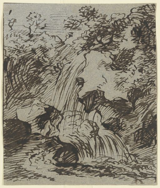 Alphonse Legros made this drawing, Peasant at the Source, using pen and brown ink. In 19th-century France, the figure of the peasant was often romanticized, seen as connected to the land and embodying traditional values. Legros, however, often depicted peasants with a certain weight and solemnity. In this drawing, we see a woman sitting by a waterfall, her gaze directed downwards, evoking a sense of introspection. Legros was deeply influenced by the social realities of his time. Themes of rural life and labor often appeared in his work. There’s a quiet dignity here, but also perhaps a hint of the hardships faced by women in rural communities. She is at the source, a place of origin, but her posture suggests a weariness, hinting at the burdens she carries. The drawing invites us to reflect on the complex realities of rural life and the often-unacknowledged strength of the women who sustained it. It resonates with a sense of human connection to the natural world and the enduring spirit of those who live close to it.