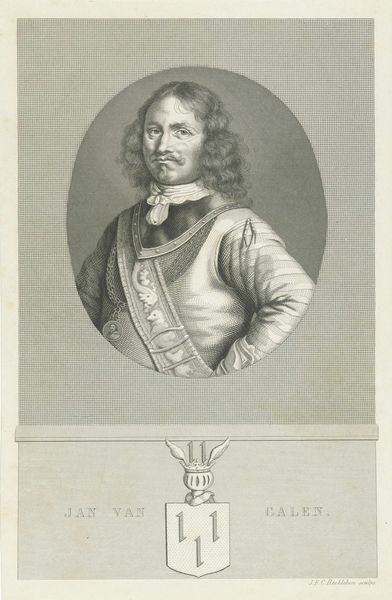 This is Jan Frederik Christiaan Reckleben's portrait of Ernst Casimir, graaf van Nassau-Dietz. Observe Ernst Casimir adorned in elaborate lace and armor. Here we witness not just a depiction of a man, but an embodiment of power. The armor, a motif echoed through antiquity, speaks of protection, strength, and readiness for conflict. Yet, the lace, so delicate, hints at the wealth and refined taste of the subject. Consider the symbolic weight of heraldry. Ernst Casimir's coat of arms, prominently displayed, roots him in lineage and legacy, a concept ever-present in the visual language of the Renaissance and beyond. Coats of arms echo the totemic symbols found in tribal cultures, where animals and emblems represented a family's identity and history. Similarly, the psychological need to belong, to be part of something greater than oneself, manifests here. These symbols tap into a collective memory. The visual echoes of heraldry persist in modern logos. The dance of symbols continues, each age reinterpreting these motifs through its own lens. The emotional power of visual symbols such as this never truly fades.