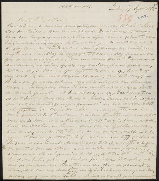 Editor: Here we have a letter from Jacobus Pelgrom, "Brief aan de Gebroeders Diederichs," possibly from 1858, currently residing at the Rijksmuseum. It’s a drawing in ink on paper and textile. It gives off a formal, almost official, vibe due to the handwriting, but it's hard to make out the exact subject. What's your read on this, looking at it from a historical perspective? Curator: Given that Pelgrom was a painter of genre and historical scenes, I immediately consider the social context. Letters at this time held immense power – dictating social interactions, business dealings, and political discourse. The formal handwriting you noted is key; it suggests a degree of intentionality in presenting himself in a specific light to the Diederichs brothers. Editor: That's a good point. So, what kind of context would make this letter more historically meaningful? Curator: Well, without knowing the letter’s contents precisely, we can consider the broader social milieu. The Rijksmuseum places importance on the Golden Age, but there’s social struggle at this time, labor relations between patrons and artists that the letter can shed light on. What political currents might be reflected, even subtly, in his choice of words and the tone he adopts? Editor: That’s interesting. It makes you think about the power dynamics inherent in something as seemingly simple as a letter. Curator: Precisely. It’s a document shaped by social expectation and likely used strategically. Recognizing that influences our understanding and elevates this letter beyond just a personal correspondence. Editor: I will definitely look at old letters differently now. Thanks!
