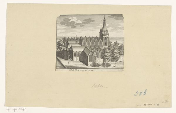 Curator: Here we have Johannes Hilverdink’s “Stadswal met kerk en huizen,” a cityscape drawing, engraving, and print from sometime between 1857 and 1902. It depicts a city wall with a church and houses, offering a glimpse into the past. What is your initial impression? Editor: Stark and somber. The limited grayscale palette gives it a feeling of constraint, as if the city itself is holding its breath. Curator: It’s interesting that you perceive constraint. From an activist perspective, these city walls represent exclusion—who is kept out, and by whom? Walls have always been physical manifestations of power, deciding who is "in" and who is "out," impacting trade, cultural exchange, and individual freedoms. Editor: And yet the towering church implies the centrality of faith in people's lives at that time. Those twin spires almost pierce the sky, a potent symbol of spiritual aspiration, perhaps a counterbalance to that earthly, exclusionary barrier. Are we meant to interpret this pairing as a representation of competing authorities? Curator: The placement is definitely intentional. I see a conversation about social structure. Look at how the artist positions people on the road – small figures, almost insignificant under the gaze of the church and within the confines of the wall. How do those civic and religious structures determine identity and dictate accepted behaviour? Editor: There’s an intriguing mirroring effect between the wall’s height and the church’s positioning, which does suggest a visual dialogue about power and control. Those details also show us Hilverdink was likely knowledgeable of, or at least influenced by, period conventions. He uses symbols like architecture and figures as narrative cues to establish themes like religion and social stratification. Curator: Precisely. Analyzing the work through the lens of contemporary theory lets us investigate not only the symbolism, but the social context and power dynamics that shaped both the image and the reality it reflects. Whose stories are missing? How can we connect this 19th century image to present day concerns about inclusion, identity and political structures? Editor: By examining its historical visual vocabulary. That city wall, the towering church—they’re all testaments to cultural memory and lasting power. Curator: This work is much more than a pretty landscape – it's a historical and political document begging to be unpacked and critically examined. Editor: It is fascinating how enduring those archetypes are. It causes us to question what visual symbols are building *now* and what long shadow they're destined to cast.