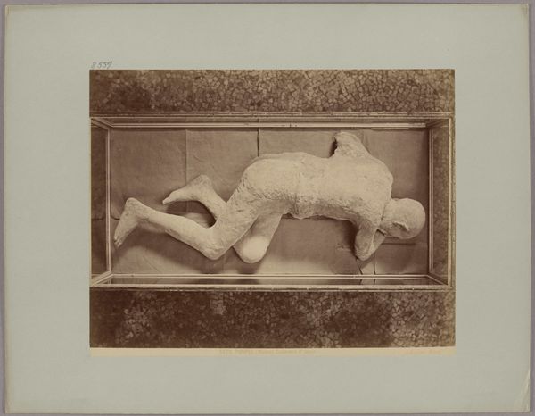 Curator: What an intriguing sepia-toned photograph. It is catalogued as "Grafmonument van Reinoud van Brederode in de Grote Kerk te Vianen," dating back to 1897. It appears to document the funerary monument of Reinoud van Brederode located in the Great Church of Vianen. Editor: The stark skeletal figure commands my immediate attention. There's an austerity, a certain coolness emanating from the composition despite its devotional context. Curator: The presence of the skeleton, or “transi” figure, carries significant weight. It served as a stark reminder of mortality, a vanitas symbol, deeply embedded in the late medieval and Renaissance periods. It also speaks to resurrection beliefs, perhaps Reinoud’s passage through death toward something beyond. Editor: Interesting. I find myself contemplating the choice of stone used for the sculptures. The quality of stone drastically impacted how the artisan could execute the memorial, as well as who ultimately was memorialized. Beyond that, I wonder if that stone was sourced locally. What connections, visible or not, existed between quarrymen and artisan that shaped this funerary project? Curator: Absolutely, the materiality intertwines inextricably with social conditions and beliefs, offering insights into Reinoud’s lineage and standing in Dutch society. The Great Church in Vianen also must have held significant meaning for this memorial to find its home there. What did Vianen represent? How did the location further establish this Dutch lord’s heritage and ambitions? Editor: So true. And perhaps if we study the sculptor and workshop’s history, we will also find this funerary project intertwined with global economic forces in ways we wouldn't initially imagine. Curator: Food for thought, indeed. The photograph, though seemingly a simple historical document, resonates deeply with the layers of mortality, memory, social standing and craftsmanship embedded within this impressive memorial. Editor: It reminds me to really look beneath the surface, beyond symbolic readings, toward those whose skilled labor produced lasting memory for those, like Reinoud, with access and power.