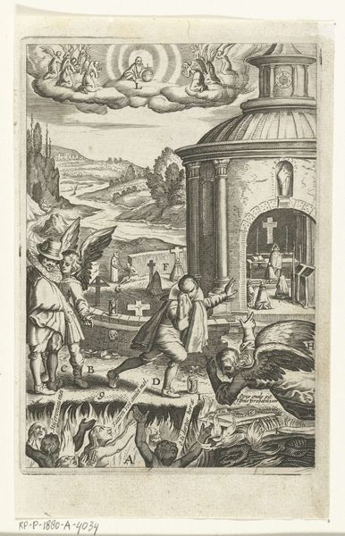 Curator: Looking at this print by Cornelis van Noorde, dating from before 1767, one immediately senses a world captured in monochrome detail. What strikes you first? Editor: The division! The image is neatly sectioned into four separate scenes, like panels in a comic book or perhaps stages of some unknown process. It's certainly intriguing and maybe hints at shifting societal activities and how their presentation impacts perception. Curator: Indeed. Each panel offers a snapshot of everyday life, almost like a silent film strip. We see scenes depicting, as the title suggests, a hay wagon, the bleaching of linen, beer barrels, and then that rather dramatic image of Samson releasing foxes with burning torches. Editor: Those different scenes point at labor, resources, and maybe even the instruments of conflict. Looking at the “bleaching of linen”, what materials were involved in creating this vast white fabric? Were they local materials? Was bleaching a large local business at this time? Curator: These details definitely highlight the print's documentary value. It reflects not only the landscapes and activities but also the economy of the time, showing various labor practices from agricultural work to early industrial processes related to cloth-making. It also serves as an iconographical reference: The Samson story was well-known through the bible. Van Noorde juxtaposes this scene with banal imagery, highlighting the social role of storytelling. Editor: Speaking of context, I can’t help but consider where something like this would be displayed or purchased. Was this print intended for a broad audience, perhaps decorating a modest home? How might the emerging culture of print contribute to new forms of visual communication, like this separation into "scenes?" Curator: That’s a great point. Prints like these became increasingly accessible and were displayed not only in homes but also served a vital purpose in disseminating information and shaping public perception about religion. The organization in separated scenes allows for different narrative perspectives too, enabling viewers to interpret it according to personal values. Editor: I agree. The interplay between high-art biblical scene and daily life also highlights what society finds valuable to be documented and shared: is that hay worth celebrating, as much as heroic feats or the brewing industry? Curator: Precisely, a confluence of economic and visual narratives is captured, prompting questions of the value embedded in mundane moments. What Van Noorde chose to portray. What choices did the client commission, and why? Editor: This image offers such a compelling look into pre-industrial labor practices and the political functions of everyday visual materials. Curator: And I believe your perspective only adds layers of meaning by examining the techniques involved in the printmaking process.