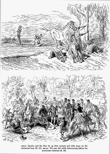Gustave Doré created these wood engravings of Don Quixote in nineteenth-century France, and they offer us a window into the social values of that time. Doré’s detailed illustrations helped to shape the visual culture surrounding Cervantes' novel. Look at how the characters are rendered: Quixote, with his gaunt frame, embodies a kind of romantic idealism, while Sancho Panza, stout and grounded, represents practicality. The images tap into long-standing class stereotypes within European culture. They speak to the ways that social roles can be self-imposed, and how individual identity exists in relation to others. Doré's work gained prominence during a period of increased literacy and burgeoning print culture, and we can research the history of illustrated books to learn more about the artist’s audience and the cultural function his images performed. What did the public expect from illustrations of classic literature? By exploring these questions, we can better understand the role of art in shaping social perceptions and cultural values.