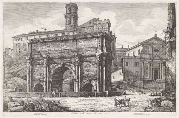"Casa Manganelli, in Via Baldesio" is an engraving by Giuseppe Barberis, who lived from approximately 1840 to 1917. Barberis captures a street scene in Italy, likely during a period of significant social and political change with the unification of Italy in the late 19th century. The architecture in the engraving reflects the wealth of the upper classes, as they constructed elaborate homes and buildings. The columns and arches of Casa Manganelli suggest an embrace of classical and Renaissance styles, reflecting the elite's desire to connect with a historical legacy of power and culture. However, the engraving also captures the stark lines of economic division. Consider the blurred figures in the background, who represent the ordinary citizens and passers-by. Their place in the scene emphasizes the contrast between the opulence of Casa Manganelli and the lives of those outside its walls. Ultimately, the piece captures a moment in time, and prompts us to reflect on the complex interplay between history, identity, and social structures.