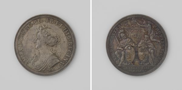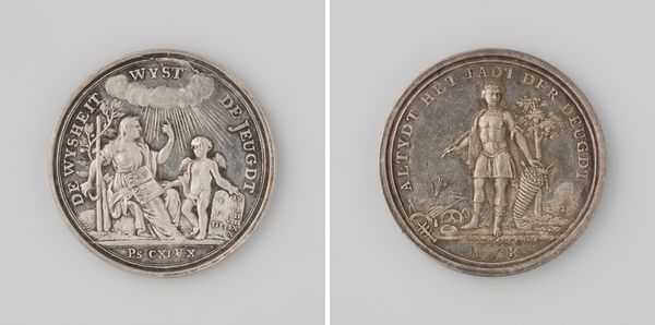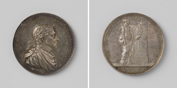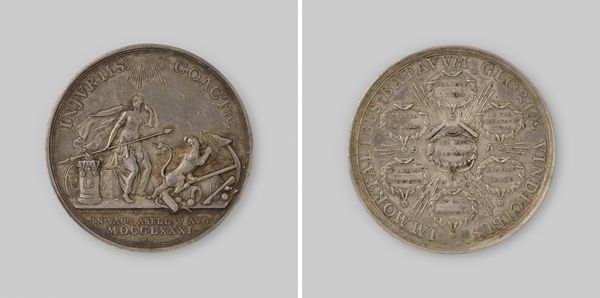 This silver medal, commemorating the liberation of Dresden, was crafted by Anton Franz Widemann. Observe how Widemann invokes classical imagery. On the reverse, the figures represent virtues or allegorical concepts. The standing female figures clasping hands, one with a crown and the other with a spear, embody royalty and freedom. Beside them, a figure sits slumped with a shield in hand, embodying defeat. These motifs echo through history. Consider how the image of clasped hands as a symbol of unity and agreement stretches back to antiquity and reappears in funerary art. This gesture, laden with social and emotional significance, taps into our collective memory, resonating as a fundamental aspect of human connection. These motifs resurface through history, charged with new meaning, yet still tethered to the primal emotions they once evoked.