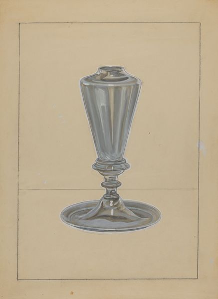 This drawing of a vase was made by John Tarantino, though we don't know exactly when. It seems he was feeling the particular yellow-green of the glass, and wanted to study it by drawing. Look at the way the color is laid down, in thin washes and strokes, allowing the light to penetrate and reflect. It reminds me of Morandi's still lifes, a similar interest in the everyday object. You can see how Tarantino lets the process be visible, the pencil marks and the slight unevenness of the color creating a sense of depth. It's like he's trying to capture not just the object, but also the experience of seeing it. And the base! It's almost like a stage. The vase sits confidently, a testament to Tarantino's close looking and tender mark-making. It's a reminder that art is, after all, an ongoing dialogue, an exchange of ideas across time.
