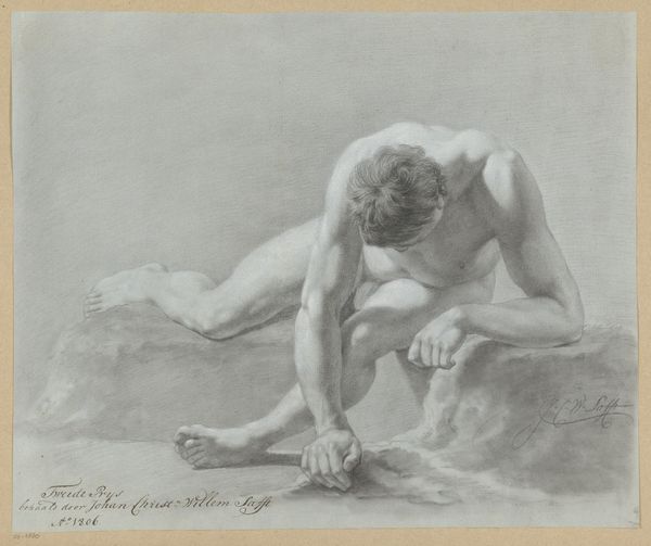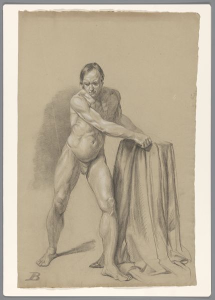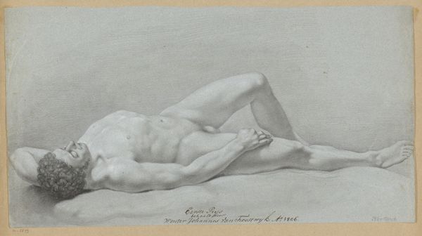 Lambertus Lingeman made this nude male study, likely in the Netherlands, using graphite in 1880. The subject of the nude male form has a long and storied tradition in Western art. It's not just about aesthetics; it's about the values we project onto the body, reflecting ideas about beauty, strength, and even morality. The image would have been made in an academic context, where male nude studies were an important part of artistic training. Consider how the image creates meaning through visual codes. The man is bearded but his body is youthful. There is a contrast between the face of the man and his athletic body. What could the cultural references and historical associations be? Historians look at artists' notebooks, teaching manuals, and exhibition reviews. The way we understand this drawing depends so much on the particular social and institutional context of the art world at the time.